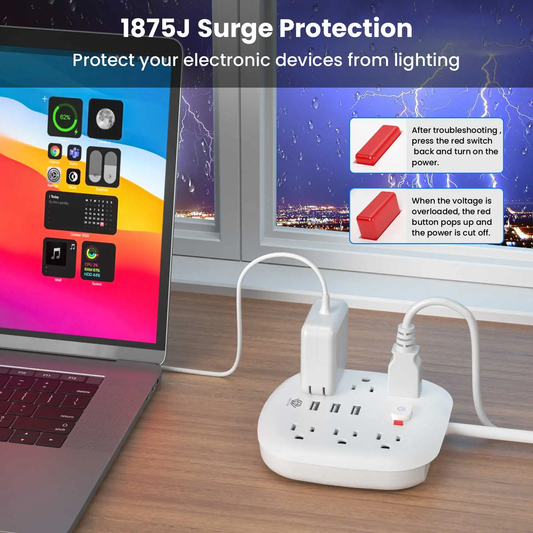 AGOAL Power Outlet with Surge Protector 6 sockets 3 USB Ports 3.3ft Extension Cord Fire Resistant For Home and Office White