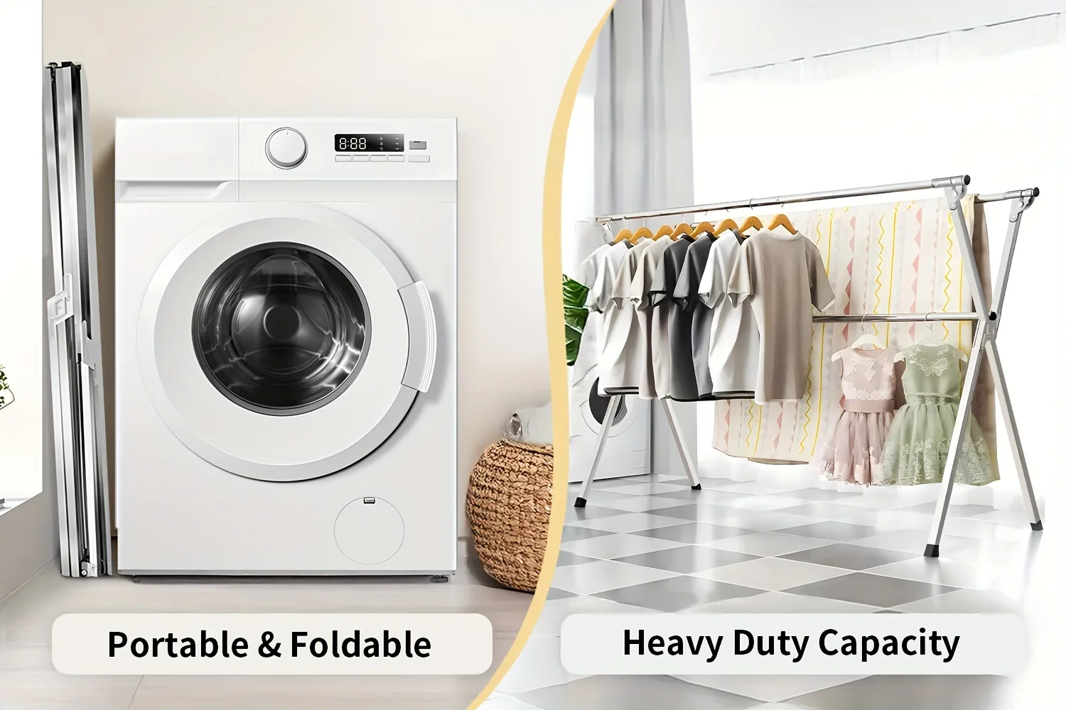 Eclatix Folding Metal Drying Rack with 20 Hooks, Retractable Large Capacity X-Frame for Indoor & Outdoor Laundry Use Clothes drying racks